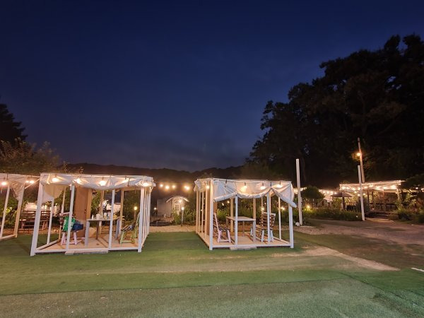 편안하게 고기를 구운 후 야외에서 불멍을 즐기며 캠프파이어를 감상하는 경험은 이곳만의 매력입니다. 특히 저녁 무렵 전구가 켜진 풍경은 따뜻한 분위기를 더해주어, 기억에 오래 남는 순간을 만들어 줍니다.