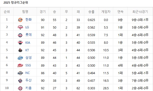 2025 프로야구 순위 실시간 비교는 야구 팬들에게 경기장 밖에서도 숨 가쁜 박진감과 흐름을 느끼게 합니다. 2025 프로야구 순위 실시간 상황은 어느 팀이 상승세인지, 또 어떤 구간에서 치열한 순위 싸움이 전개되는지를 보여주며, 시즌의 열기를 시각적으로 체감하게 해줍니다. 2025 프로야구 순위 실시간 흐름을 따라가는 것은 단순한 순위 확인을 넘어 경기의 맥을 이해할 수 있는 중요한 요소가 됩니다.
